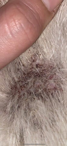 Je te remercie pour ta réponse! Je vais suivre tes conseils, je te joins une photo des grosses lésion qui se trouve au niveau de la tête/ cou, j’ai l’impression que c’est même presque à vif je vais appeler le vétérinaire demain pour être sûr de rien appliquer qui pourrait lui être douloureux