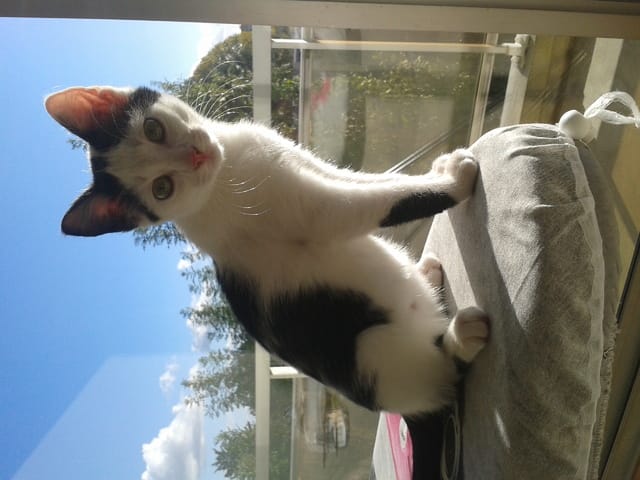 Maintenant il a 5 ans - c'est le chat le plus tranquille, le plus zen que j'ai connu. Il se laisse caresser, tortiller cajoler dans les bras de mes amis sans problème.