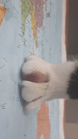 Bonjour! Ce matin j'ai pu remarqué que mon chat degriffé saignait de la patte.. Elle est enflée entre ces deux "orteils" et au début il y avait du sang. J'ai donc décider d'appliquer de l'onguent ou il y avait le saignement. Ce dernier a cessé mais sa patte est toujours enflée.(entre ses orteils) Elle n'a pas de mal à marcher ni à s'assoir dessus mais je voulais tout de même avoir l'avis de certains: que devrais-je faire et que pensez vous que c'est?