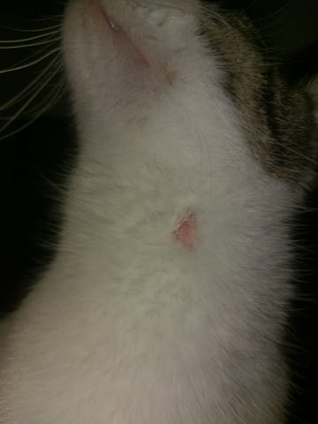 Voilà depuis quelques jours je suis assez inquiète, mon chat a sous la tête une "tâche" ou il n'y a plus de poils et où la peau semble à vif... Il ne sort pas et donc n'a pas pu se faire ça en se battant.