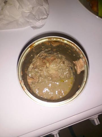 Voyez donc la bonne surprise que j'ai eu sur un pot de paté Junior Whiskas... (le produit était bien fermé, et était resté qu'un seul jour à l'abri.)