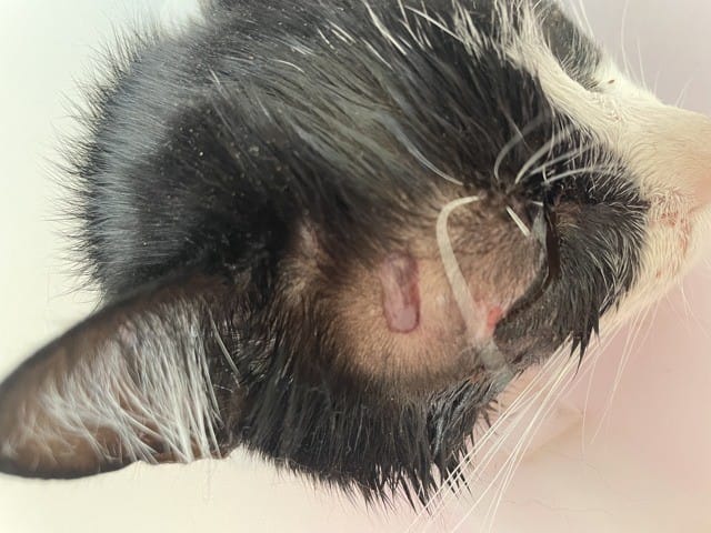 En gros mon chat souffre d'un abcès au-dessus de l'oeil droit depuis samedi soir. Il a été admis aux urgences où il a été introduit un traitement antibiotique+antiseptique local+ anti inflammatoire