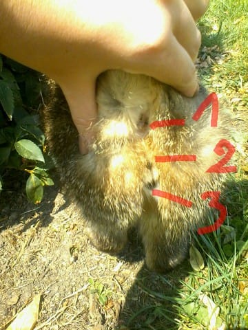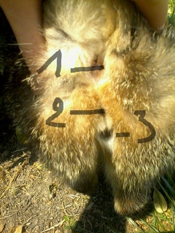Pour vous aider en 1 c'est son anus, en 2 c'est des poils noirs pas un orifice, en 3 l'orifice