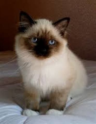 Ulalie : Voilà un chaton Sacré de Birmanie Seal Point pure race. C'est nettement plus rond et le poil plus vaporeux. (Mais le Sacré a été créé à partir du Siamois croisé angora à l'origine.)