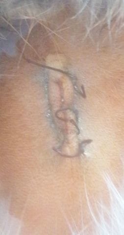 Et vous verrez ainsi ce qui se passe avec sa cicatrice, en plus le véto a mis une protection grise sur sa plaie ( je sais plus le nom) mais c'est censé protéger la cicatrice, comme ça vous serez fixée sur ce qu'elle risque vraiment.