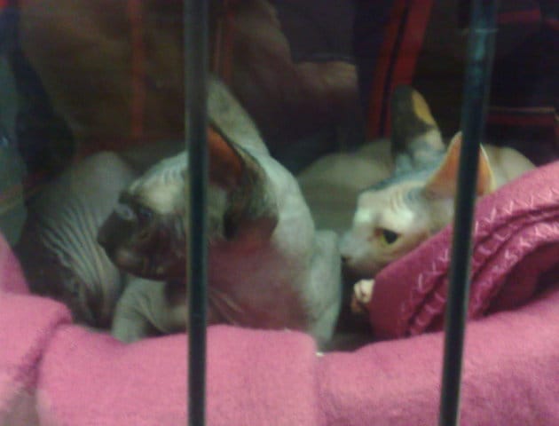 Pour toi Solebo deux adorables Sphynx et un Cornish Rex. Merci à toi de nous rappeler qu'il y a des expositions félines régulièrement partout en France et pas seulement en Ile de France !