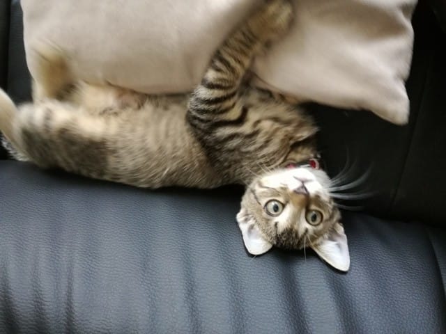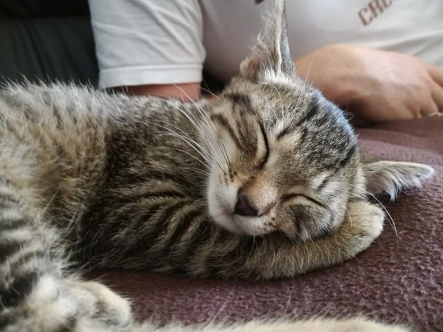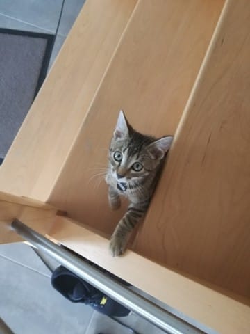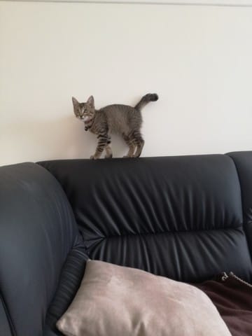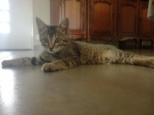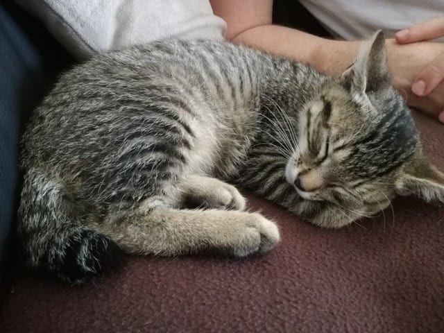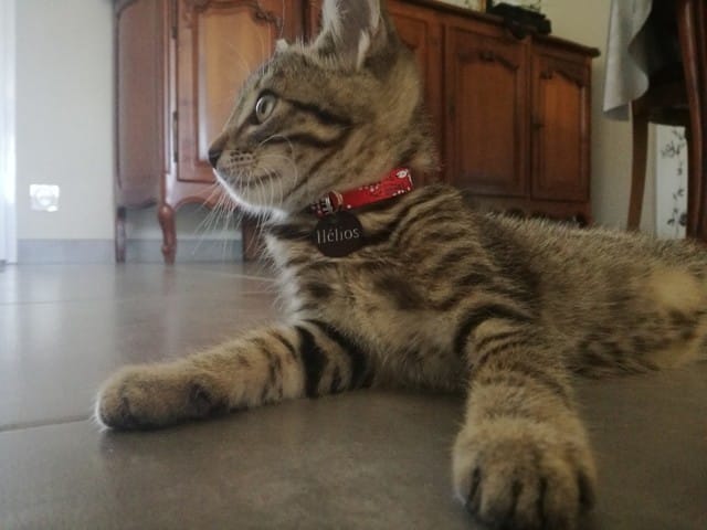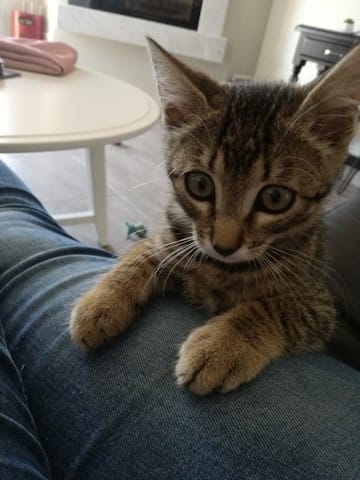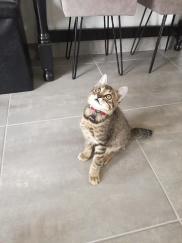 Avant hier, mes parents qui étaient en balade avec Milou (chien) m'envois un message pour me dire qu'il avaient trouvé un petit chaton au milieu de la route. Ni une ni deux je leurs répond immédiatement pour avoir une photo du pauvre loulou abandonné, sur la photo je lui aurait donné 2 mois environs, j'avais déjà vu qu'il s'agissait d'un mâle (pattes assez large).