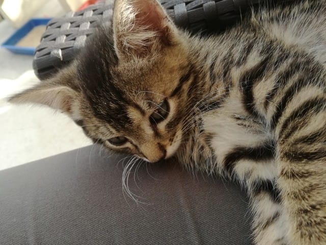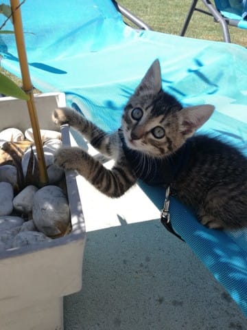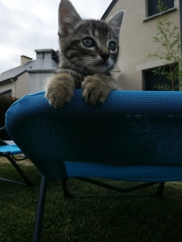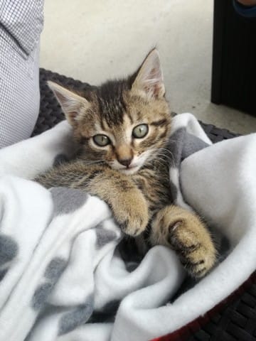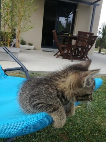 Avant hier, mes parents qui étaient en balade avec Milou (chien) m'envois un message pour me dire qu'il avaient trouvé un petit chaton au milieu de la route. Ni une ni deux je leurs répond immédiatement pour avoir une photo du pauvre loulou abandonné, sur la photo je lui aurait donné 2 mois environs, j'avais déjà vu qu'il s'agissait d'un mâle (pattes assez large).