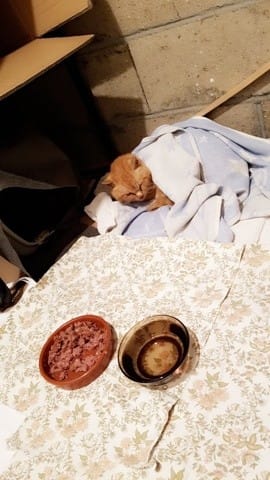 Je nourris les chats du cimetierre et Il y en a un qui est dans un triste état.