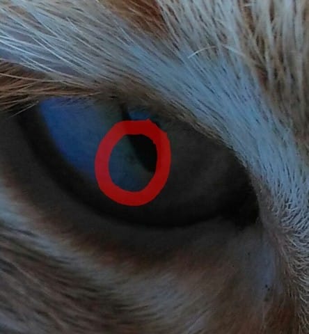 Ça n'a pas vraiment l'air de le déranger, du moins niveau douleur, après je suppose que comme c'est sur la cornée ça doit avoir un impact sur sa vision, non ?