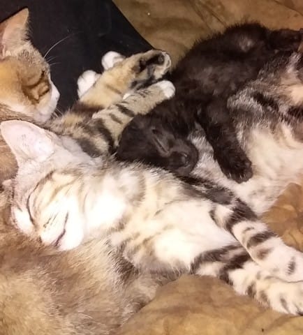 Vos chats sont tous magnifique ! Je vous présente chaussette, qui n’est pas encore sevrée. Je vais la chercher courant Août, pour l’instant, elle profite de sa maman et de ses frères et sœurs! J’ai tellement hâte de l’avoir, elle a déjà un très grand arbre à chat qui l’attends à la maison 🙄