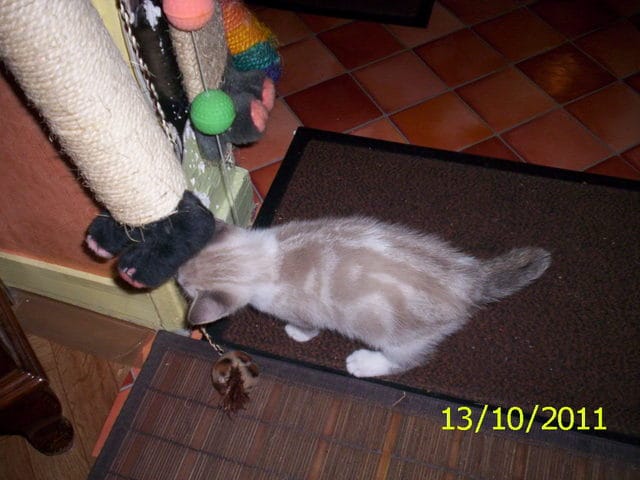 moi risouille elle fait c,est griffe au plafond de sa litiere, et caline sur le tapis de la cuisine .