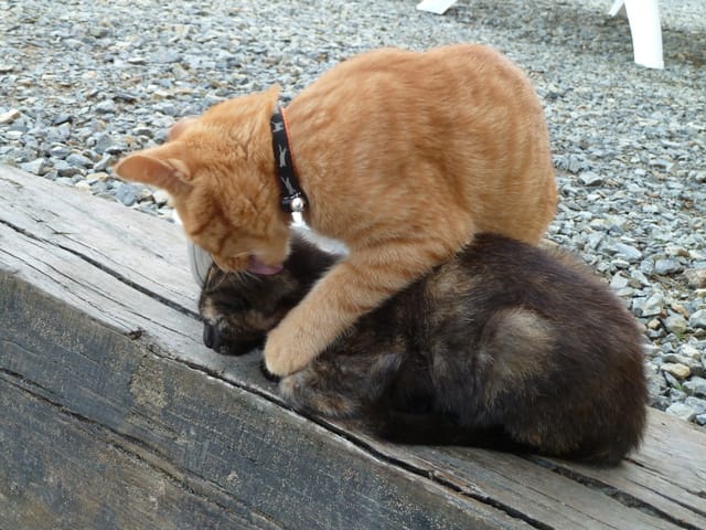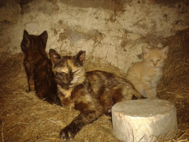 voila la maman de chataigne en 2013 avec une autre portée (2 chatons) malheuresement la petite femelle ecaille de tortue a eu un accident (qui a boulversé Dulcey) quant au 2e issu du meme pere que Dulcey c'est lui qui est devenu méchant avec tout les autres bien qu'il ai été adopté par une voisine il n'a pas été castré