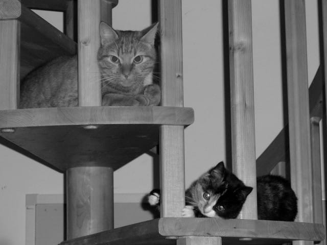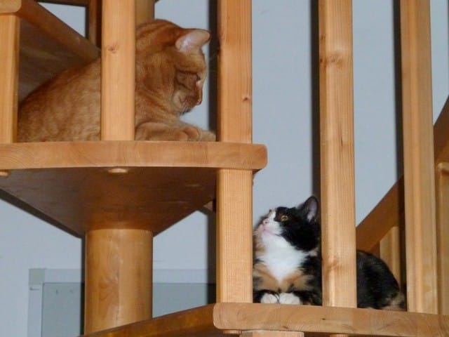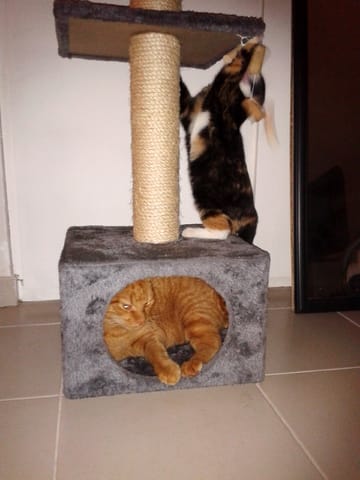 l'arbre a chat de Dulcey n'avait jamais vraiment servi car pas assez stable pour sa carrure et il ne s'y cachait meme pas.