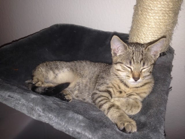 Sangha, le papa est castré depuis la veille de la naissances des petits. Mais il me semble plus gros. Je le vois souvent manger dans les gamelles des chatons au lieu de la sienne avec les croquettes adulte. Savanah, la maman en fait de même.