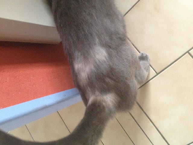 Voilà, mon compagnon a une chatte gouttière de 14ans et depuis quelques temps, on constate qu'elle perd en abondance ses poils au niveau du bas du dos, un peu sur les flancs et la base de la queue (se référer aux photos).