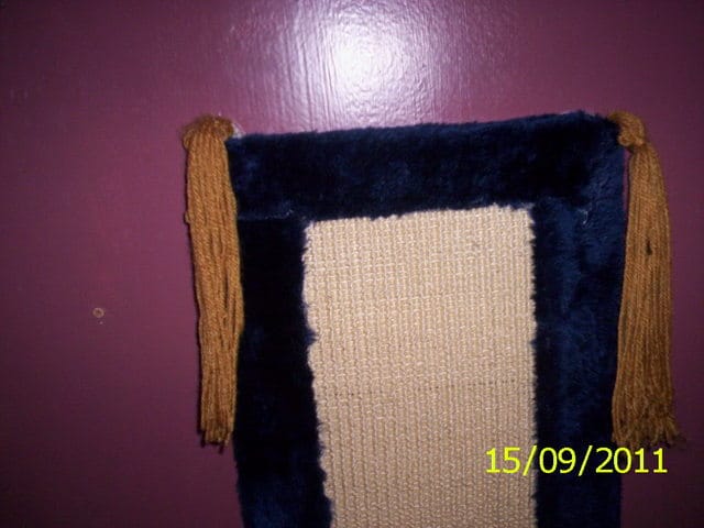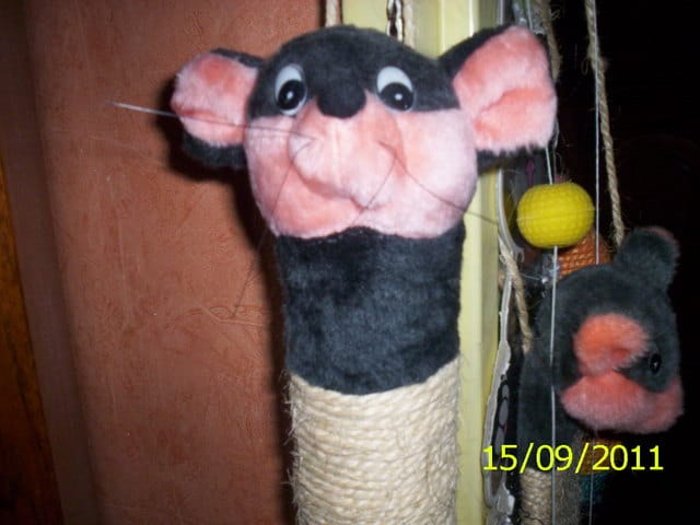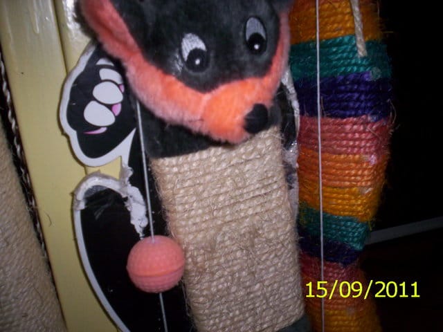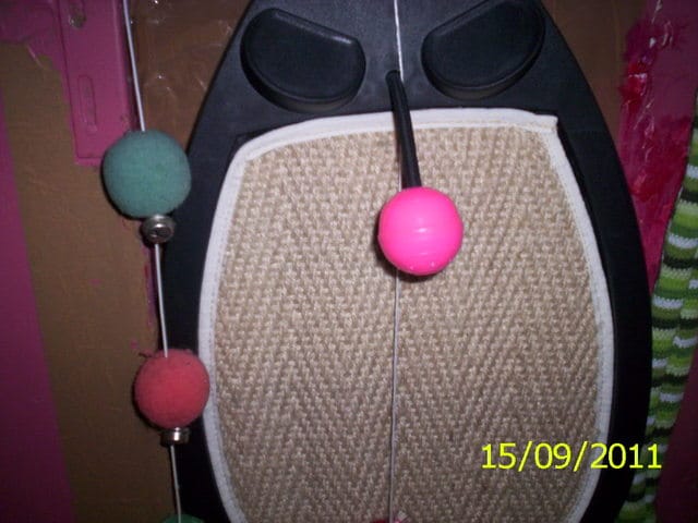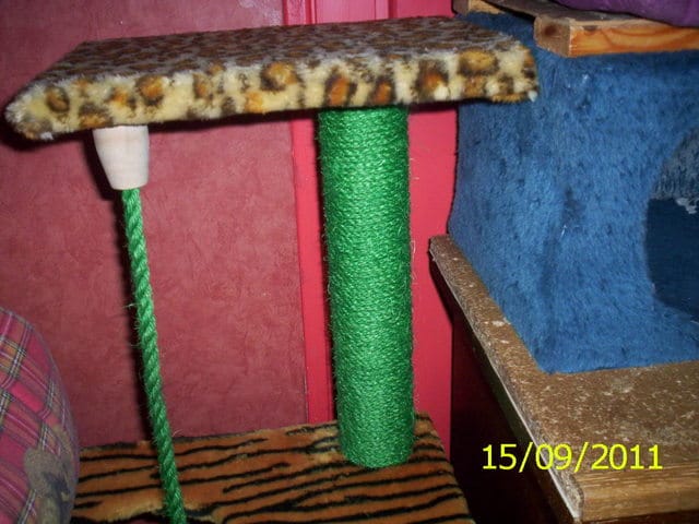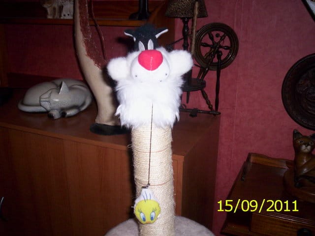 voilà l'arbre à chat que j'ai pris pour Twin, mais c'est un achat inutile ! il est beaucoup trop petit, twin peut pas faire ses griffes dessus, et ni se coucher sur l'endroit fait pour ( vrmt trop petit )