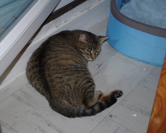 Elle ne fait rien de tout cela. Elle reste là dans son coin, va dans la litière, va manger ou boire puis retourne dans son coin, par terre ou dans le panier.