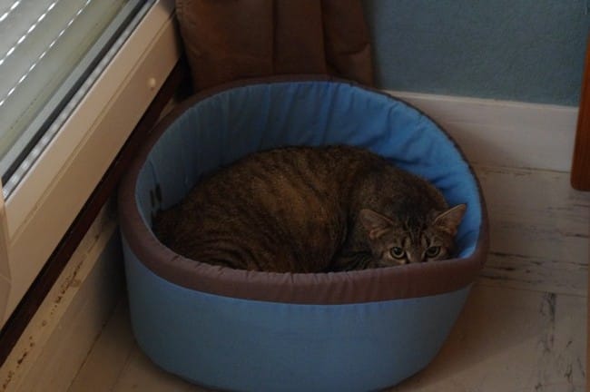 Elle a alterner carrelage de tout son long et panier. J'aimerais bien qu'elle les fasse vite parce que sinon c'est véto mais ça va la faire stresser plus qu'autre chose ... Et pas sûr qu'elle se laisse examinée va falloir l'endormir ...
