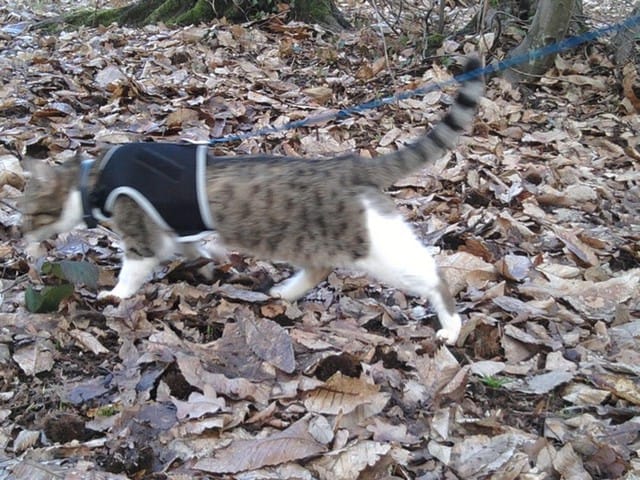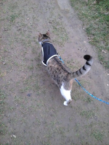 Pour lui changer les idées, la faire marcher un peut, et lui musclé les pattes arrières on à décider de lui faire des petites promenades.