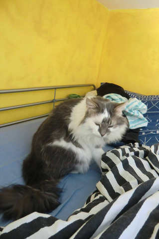 Bon sinon Chat Mallow va bien, il n'est pas retombé malade depuis la dernière fois (certains s'en souviennent peut être, il a été empoissonné a la mort au rat parce qu'il avait mangé une souris qui elle en avait mangé aussi). Mais là ça va, il profite du beau temps