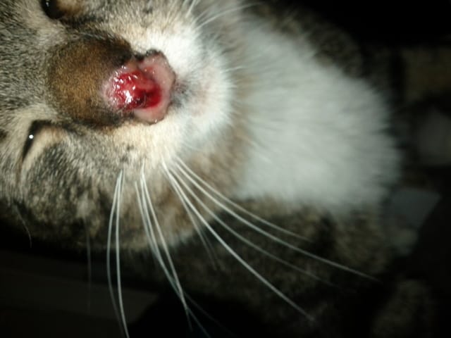 Nez cassé chat.