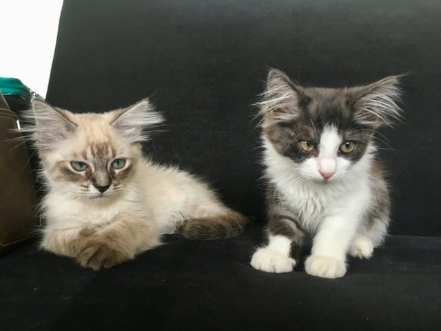 Les chatons vont bien, elles prennent leurs marques petit à petit, font des bêtises ^^ Kirua a été malade, un souci à l’oeil, ça va mieux maintenant, on comprend pourquoi elle été pas très vive, elle redeviens un petit chaton joueur comme ça sœur ^^