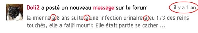 ma pauvre petite chatte (12 ans) a parfois des problèmes d'infection urinaire. On ne s'en rend pas compte, car elle sort. Je voyais bien qu'elle était maigre, mais c'est peut-être l'âge. Et pas facile de peser à 200 g près un asticot qui gigote sur la balance