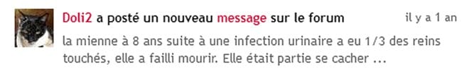 ma pauvre petite chatte (12 ans) a parfois des problèmes d'infection urinaire. On ne s'en rend pas compte, car elle sort. Je voyais bien qu'elle était maigre, mais c'est peut-être l'âge. Et pas facile de peser à 200 g près un asticot qui gigote sur la balance