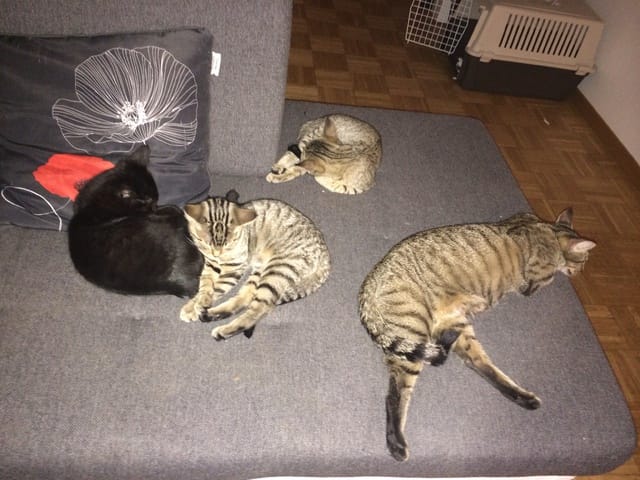 Si quelqu'un serait intéressé à suivre l'évolution des chatons avec les parents, je peux mettre les vidéos sur Youtube :-)