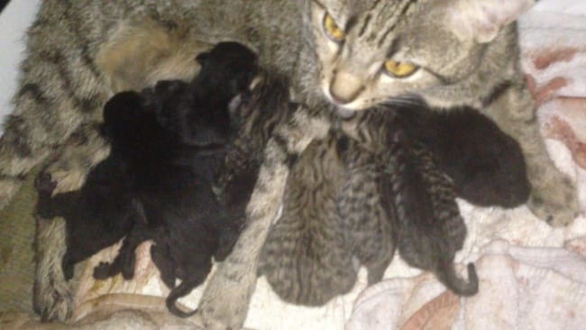 Ce matin à 9h45 j'ai remarqué un morceaux gluant et épais de couleur beige bizarre qui pendait de sa vulve et ses poils de l'arrière train mouillés! Donc je pense que là, ma petite Savanah a perdu les eaux ce matin. En écrivant ce post, elle est à côté de moi, et des gouttes d'eaux s'écoulent. À 10h, elle a eu des fortes contractions le temps de 5 mins. Puis à 11h, rebelotte, contractions durant 5 mins.