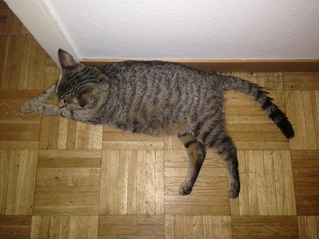 Elle me cherche et miaule pour me réclamer et reste collée à moi et me suit partout.