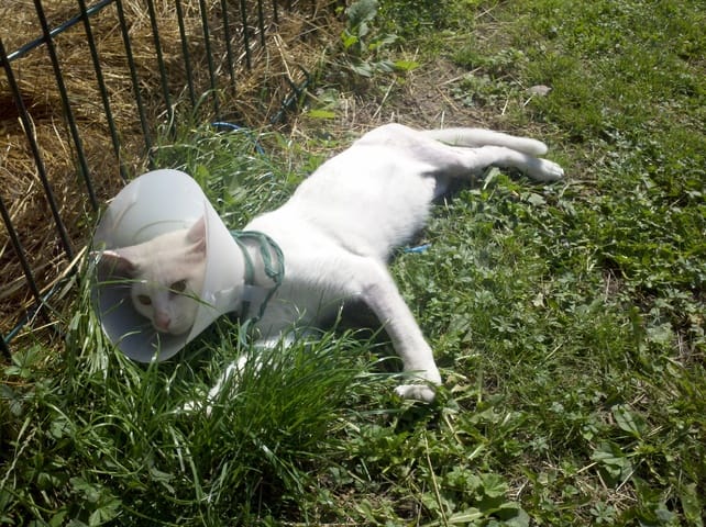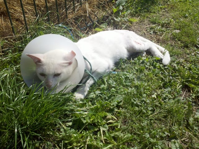 Flocon ne sort jamais hormis dans le jardin et tout les matins elle est la a attendre sa gamelle.