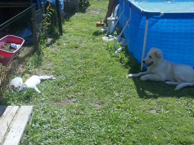 Le voisin n'est pas la... Nous sommes obliger d'entrer sans autorisation.. Par chance le portail est ouvert.
