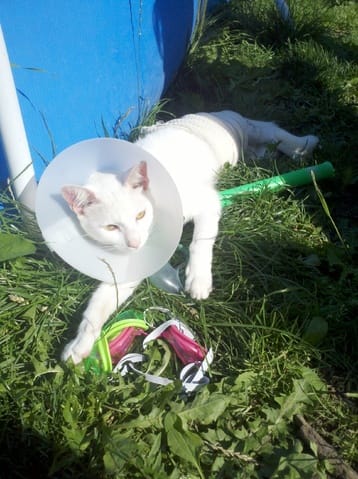 Me voila donc sortir de chez moi et me rendre vers le portail du voisin. La j'appelle Flocon. Elle me répond avec des miaulement très fort, de douleur plusieurs fois a chaque fois que je l'appelle. Mais je ne la voit pas.