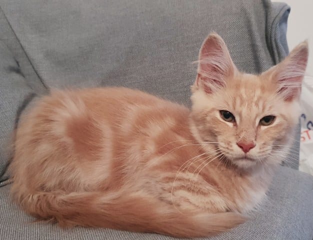 Moi aimant les chats, avec mon compagnon nous avons donc décidé de prendre un Maine Coon. Et quelque jours plus tard nous avons eu Owen, un amour de chaton et grosse boite à ronron.