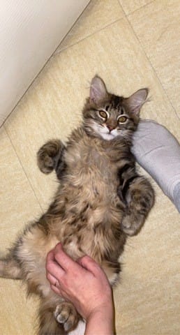 Il est magnifique et a très probablement des gènes Maine Coon, en effet. Pour rappel, un chat sans pedigree est officiellement un chat de gouttière, éventuellement 'type' quelque chose. Il a l'air d'avoir des panards XXL, typique du Maine Coon. Attention à ce qu'il ne vous marche pas sur les pieds 👎