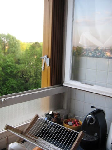 Là où je suis maintenant il n'y a quasiment pas de rebords de fenêtre. Jusqu'à maintenant (j'ai emménagé en décembre), l'ouverture des fenêtres ne posait pas trop de problème, l'espagnolette suffisait, mais avec l'arrivée des beaux jours il va falloir que je trouve une solution, en plus je vois bien que ses petits bains d'air et de soleil lui manquent, elle gratte aux fenêtres.