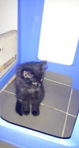 Un peu jeune pour être adopté, il a max un mois et demi à vue de nez, il faudrait qu'il reste avec sa mère idéalement pendant encore 1 mois et demi pour un sevrage comportemental adéquat et devenir un adulte équilibré.