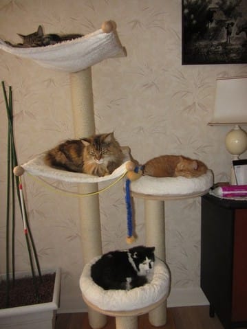 Dans les mois prochains, on va investir dans de nouveaux arbres à chat (1 ou 2) et j'aimerai avoir vos avis sur "comment les choisir" ? Sachant que nous avons deux chats particulièrement différents. Eclair saute sur son arbre, griffe un peu, saute au sol, il grimpe, il fait le foufou. Enjie est bien plus posée, elle cherche le confort et griffe méthodiquement un petit coin.