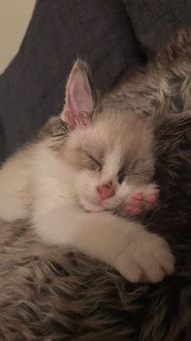 C'est un chaton de 2 mois croisé ragdoll/siamois.