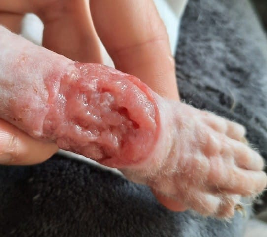 Le vétérinaire a voulu refermer avec des points (le 9 mars) sans succès, la plaie s est reouverte.