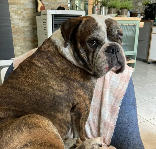 Oggy est un chien doux, câlin affectueux. Il préfère le canapé aux balades dans le froid. C'est d’un grand charmeur. Il aime tout le monde. Aucun souci avec les enfants.