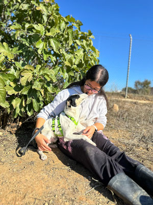 En l'approchant les bénévoles ont tout de suite compris que cela ne serait pas facile de l'attraper. Il était effrayé et très méfiant, mais avec de la patience et quelques friandises, après 3 longues heures, les bénévoles ont pu gagner sa confiance et le prendre dans leurs bras.
