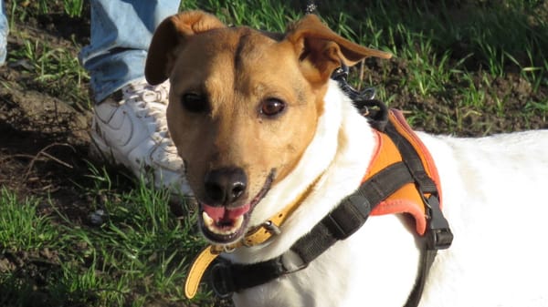 Olympe, charmante Jack Russell de 7 ans, cherche une famille aimante après avoir été abandonnée avec sa sœur suite au décès de leur maître.