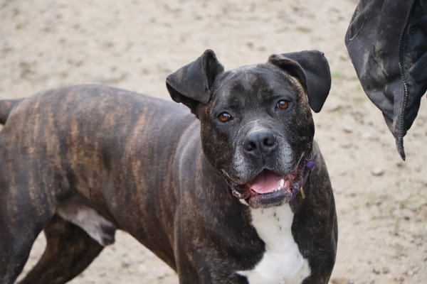 Il pourrait s'entendre avec une femelle, à tester au refuge. Il n'aime pas les mâles ni les chats, et nous ne le placerons pas avec de jeunes enfants.