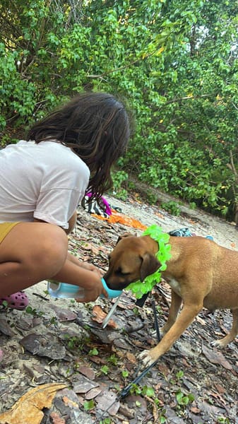 En balade, je me transforme en petite aventurière.J'ai un super rappel, j'adore courir, explorer, et surtout jouer sur la plage avec la petite fille de ma famille d'accueil.
