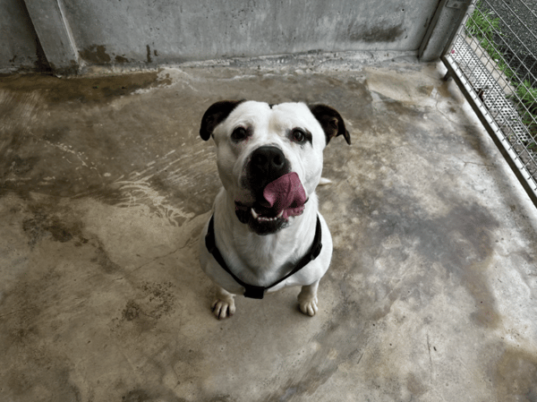 Tango est un croisé dogue de presque 40 kg d'amour et d'énergie. Il a passé presque 6 mois en fourrière, nous ne connaissons pas son passé. C'est un loulou très dynamique qui aura besoin de bonne dépenses mentales et physiques. Il est assez avenant avec l'humain mais brusque.