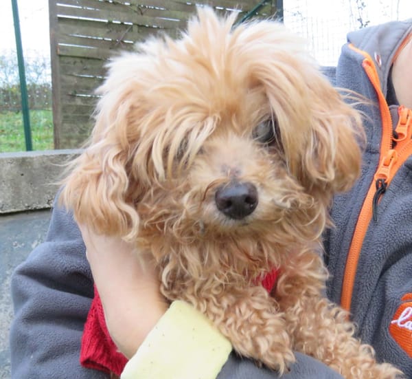 Nougat est un vieux loulou aveugle et surement sourd. Il est estimé à 13 ans.