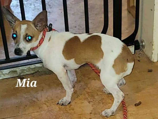 Mia, adorable croisée Chihuahua / Rat Terrier, nous vient de Géorgie.